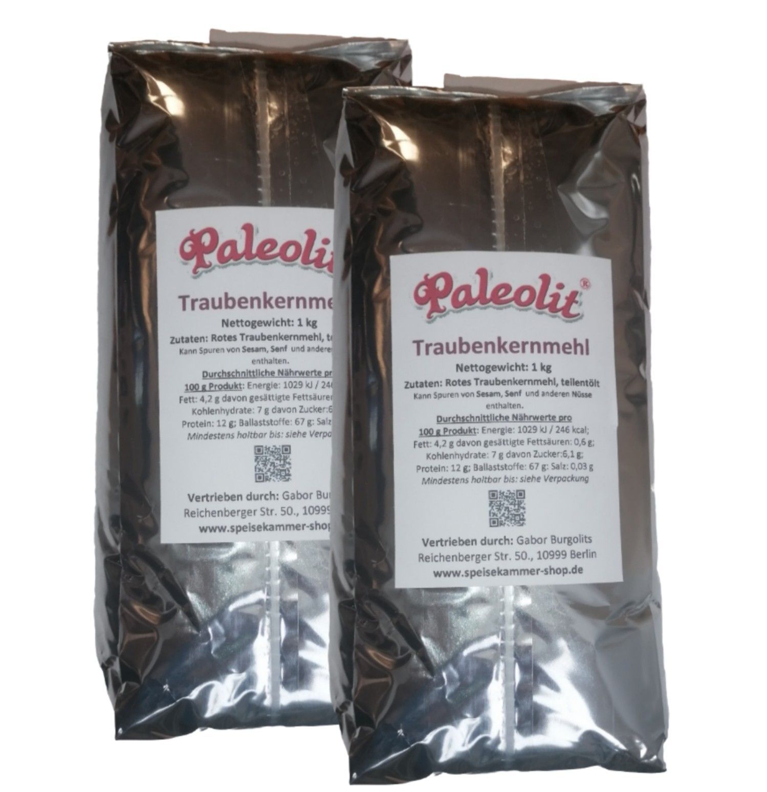 2 x 1kg Traubenkernmehl OPC Rohkostqualität 100 % Naturrein Fein Gemahlen