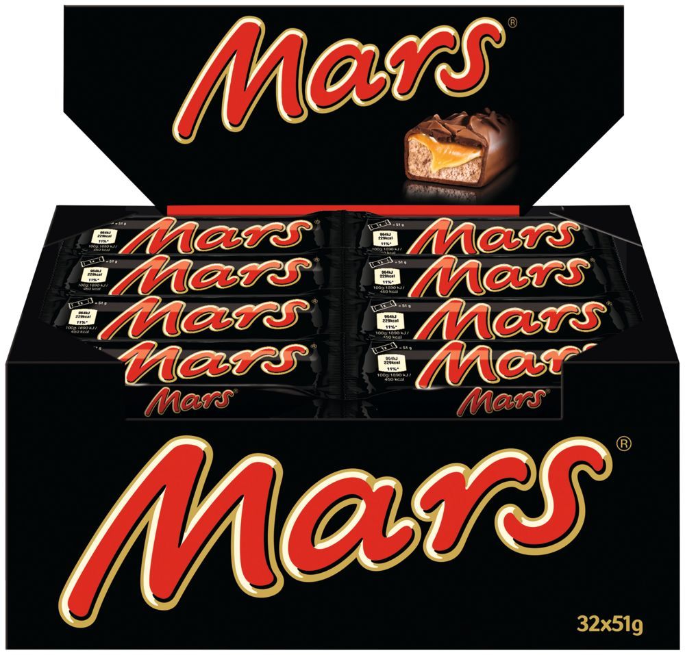 2 x 32 Riegel - Snickers + Mars - je 1 Thekendisplay a´ 32 Riegel