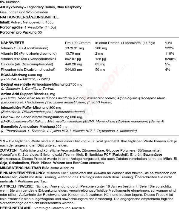 2 x 5% Nutrition AllDayYouMay - Legendary Series, Blueberry Lemonade - 450g