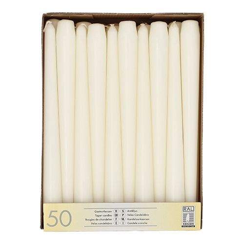 2 x 50 Leuchterkerzen Ø 2,2 cm · 25 cm weiss