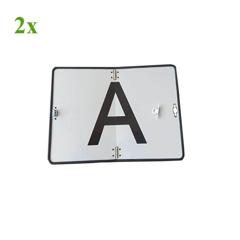 2 x Reflektortafel klappbar ( inkl. Drehverriegelung ) 400 x 300 mm für LKW, Anhänger, Aufbauten der Abfallwirtschaft , abgerundete Kanten mit Kantenschutz! Tafel gemäß Kreislaufwirtschaftsgesetz (kurz KrWG) seit dem 01.06.2012 gemäß EU-Recht, in der Form der EU- (Abfall-) Richtlinie 2008 98 EG Mate