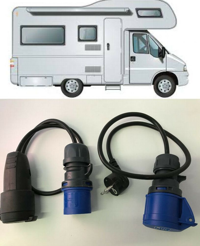 2 x Adapter CEE 230V Schuko Kabel Camping Stromadapter 16 A / IP 44 Wohnwagen