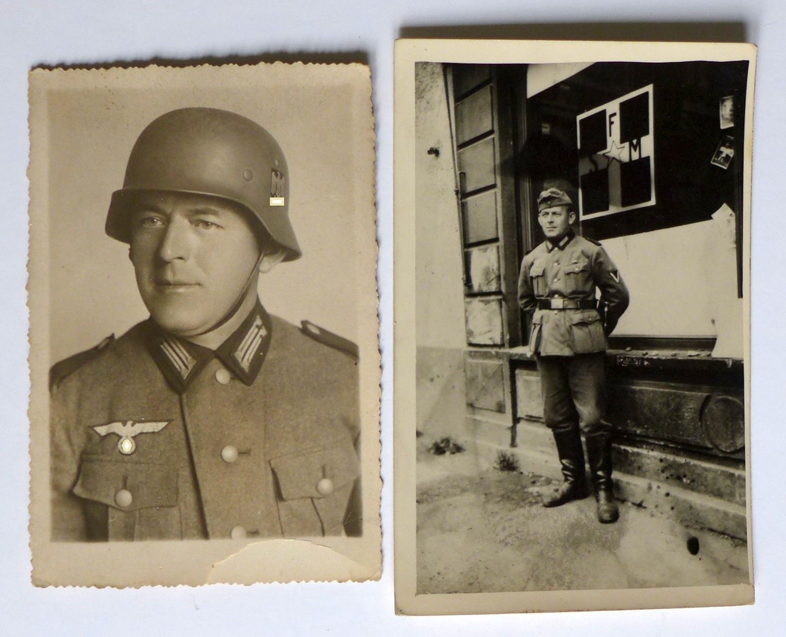 2 x AK Soldat Porträt Foto II. WK Stahlhelm