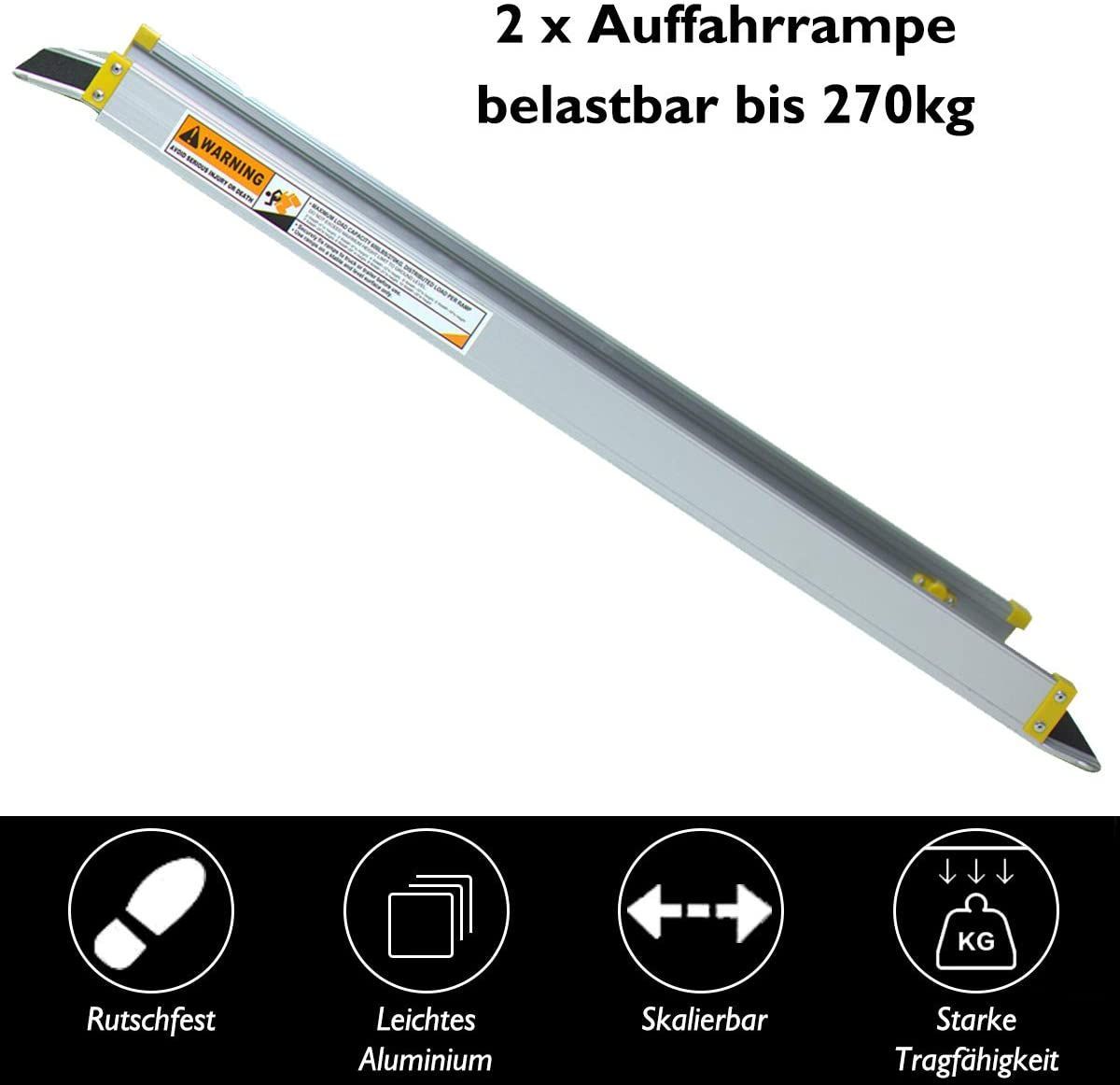 2 x Auffahrrampe bis 270 kg, Teleskoprampe mit Antirutsch Belag, Teleskop-Rampe
