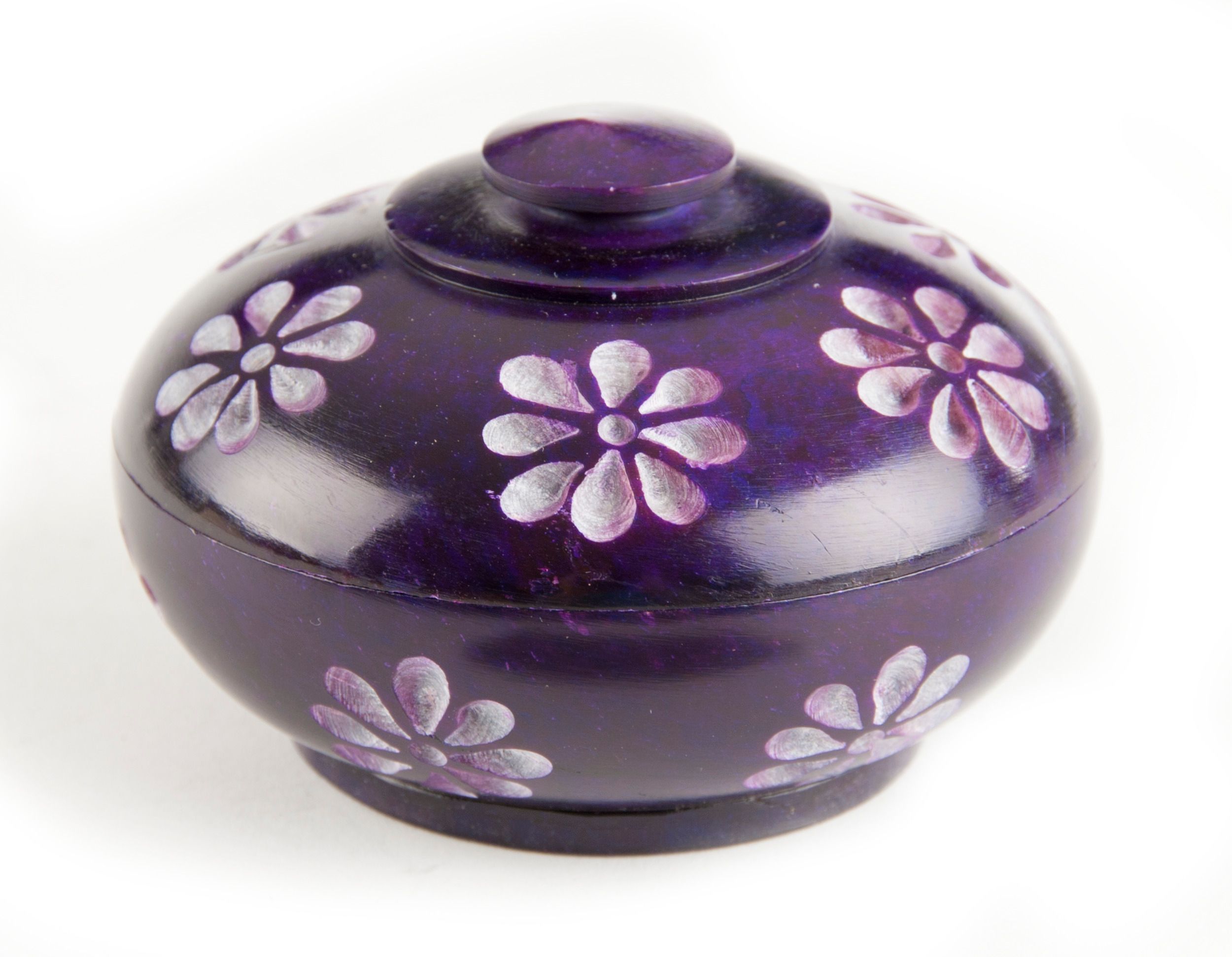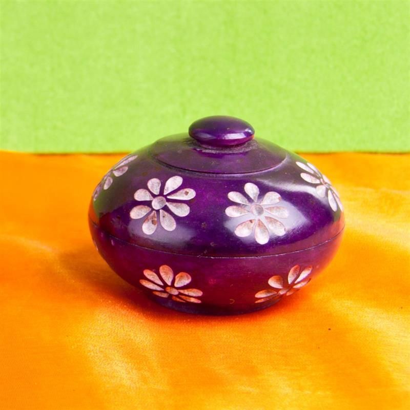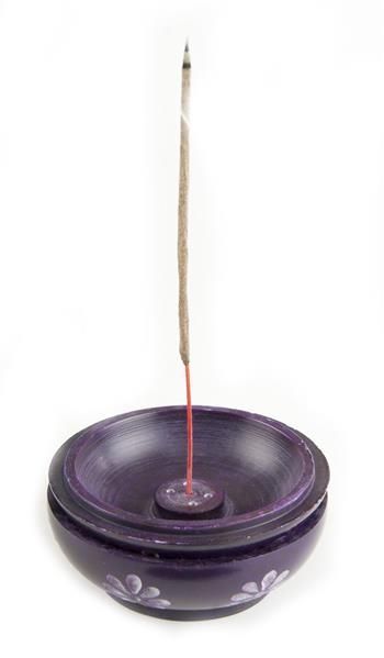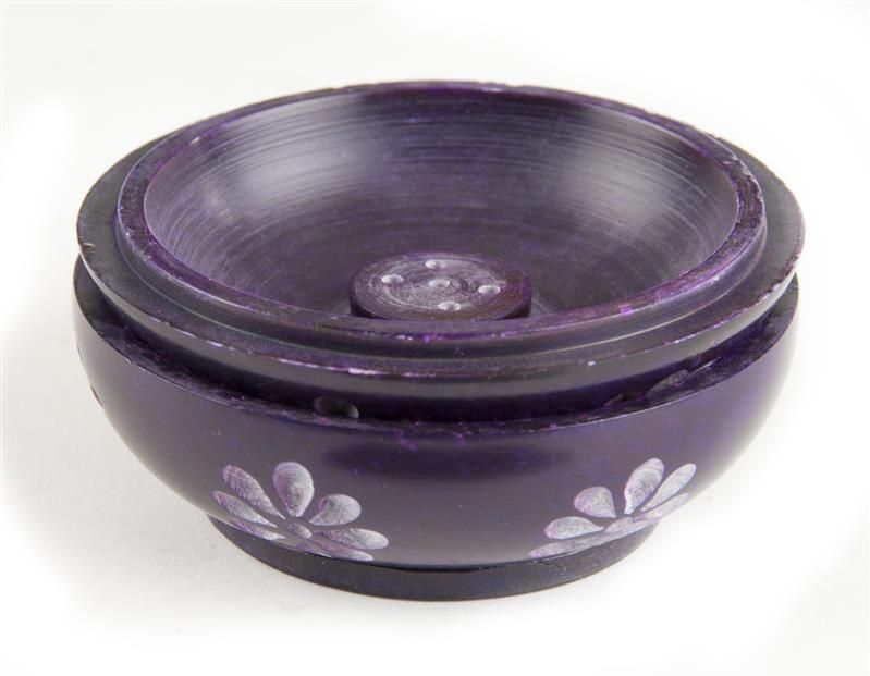 2 x Blumendöschen Räucherstäbchenhalter Speckstein ø 7,7 cm lila Steindose