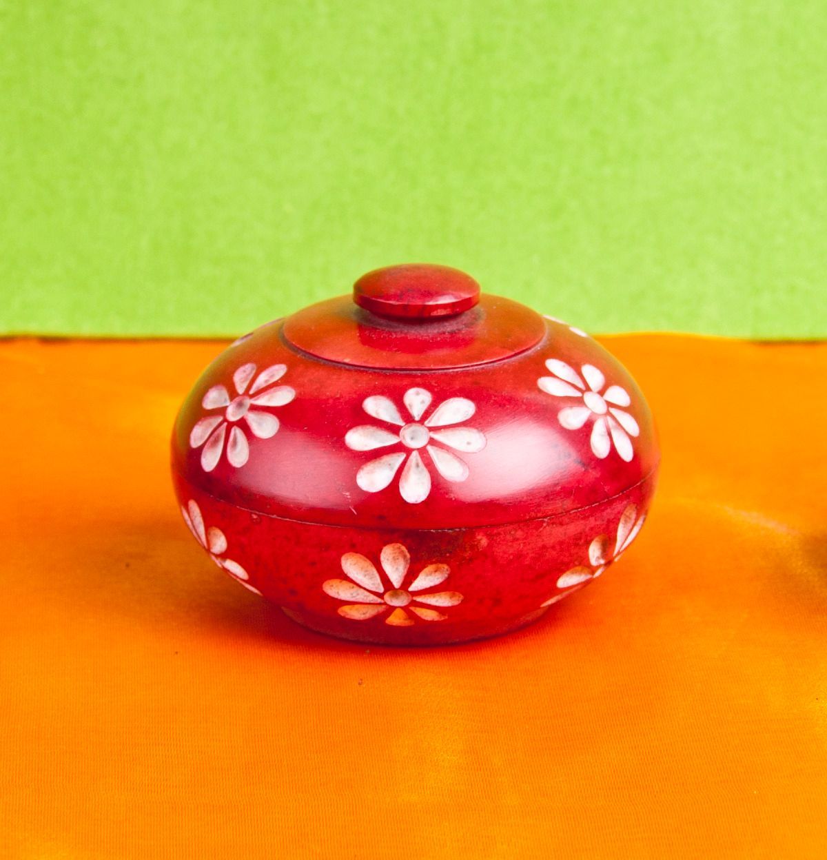 2 x Blumendöschen Räucherstäbchenhalter Speckstein rot ø 7,7 cm Steindose