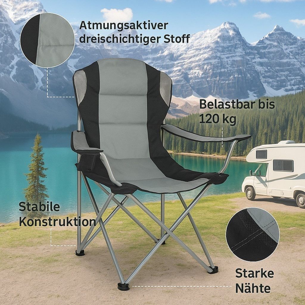 Ob beim Camping, Angeln, auf Festivals oder im heimischen Garten – dein perfekter Sitzplatz, wo immer du bist! Campingstuhl CANADA Dein flexibler Begleiter für jedes Abenteuer! 2 STÜHLE - EIN PREIS Unser neues Modell ist in wenigen Sekunden aufgebaut - lästiges Zusammenbauen entfällt komplett.