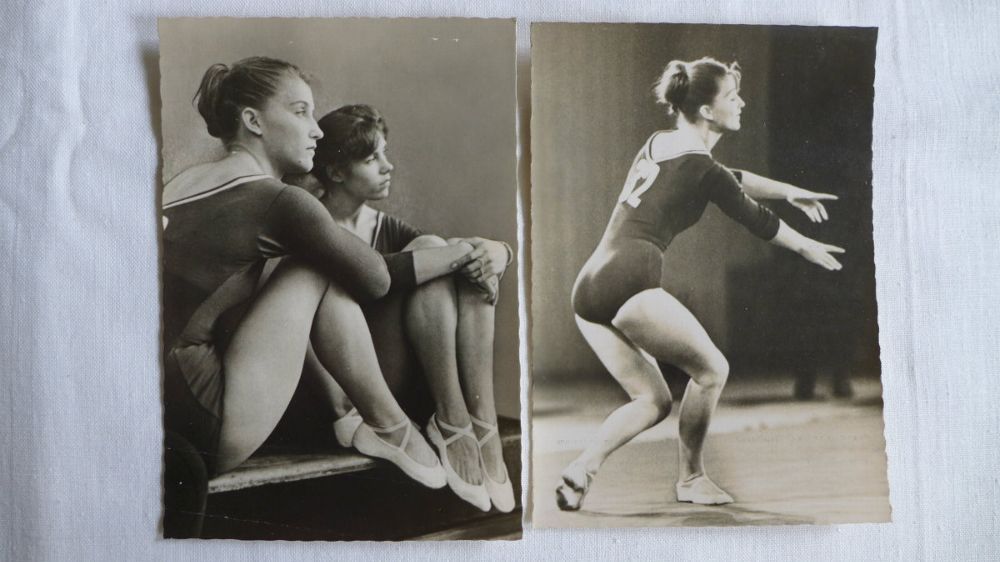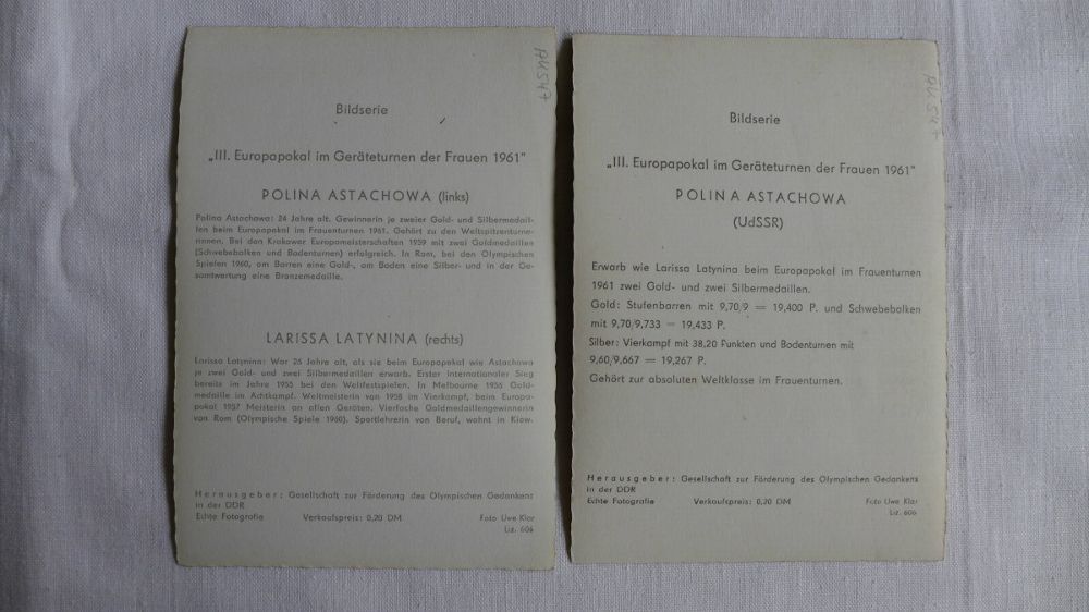 2 x DDR Sport Foto im AK Format 1961 Europapokal Geräteturnen Astachowa Latynina