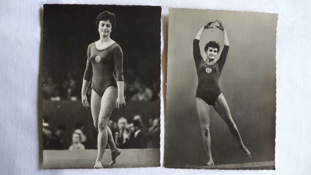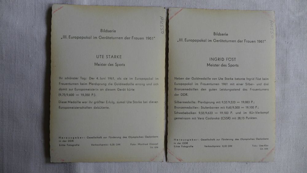 2 x DDR Sport Foto im AK Format 1961 Europapokal Geräteturnen Föst Starke