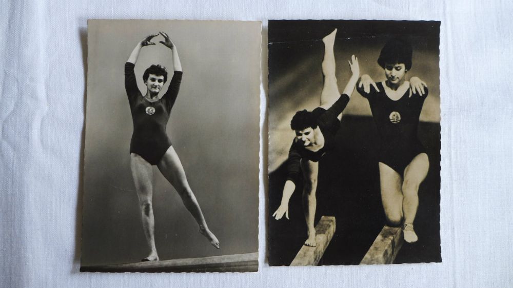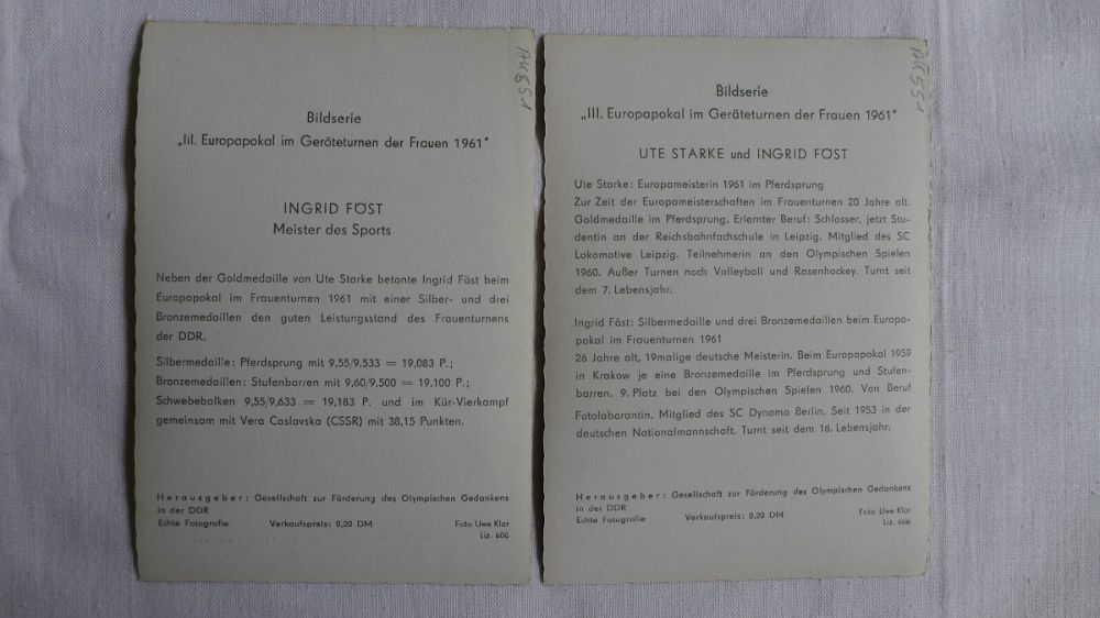 2 x DDR Sport Foto im AK Format 1961 Europapokal Geräteturnen Föst Starke