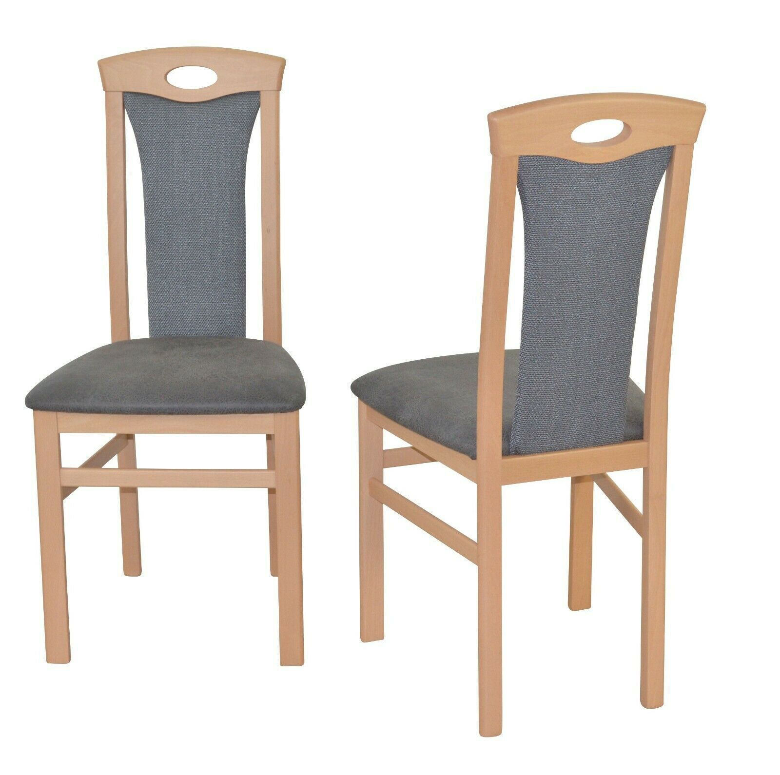 Esszimmerstühle Stuhle 2er Set CAROS Massivholz Buche Stoff Grau