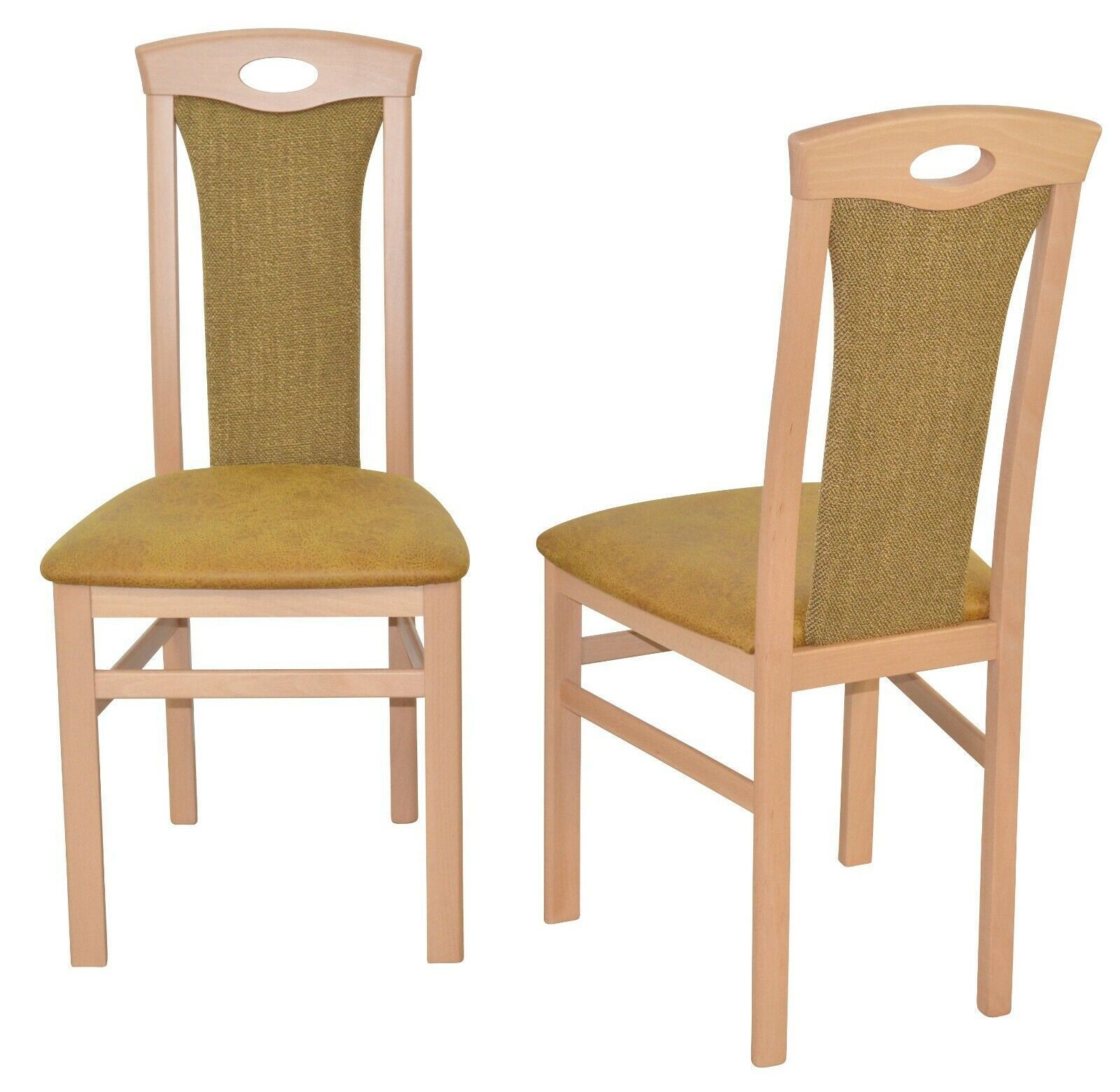 Esszimmerstühle Stuhle 2er Set CAROS Massivholz Buche Stoff Gelb
