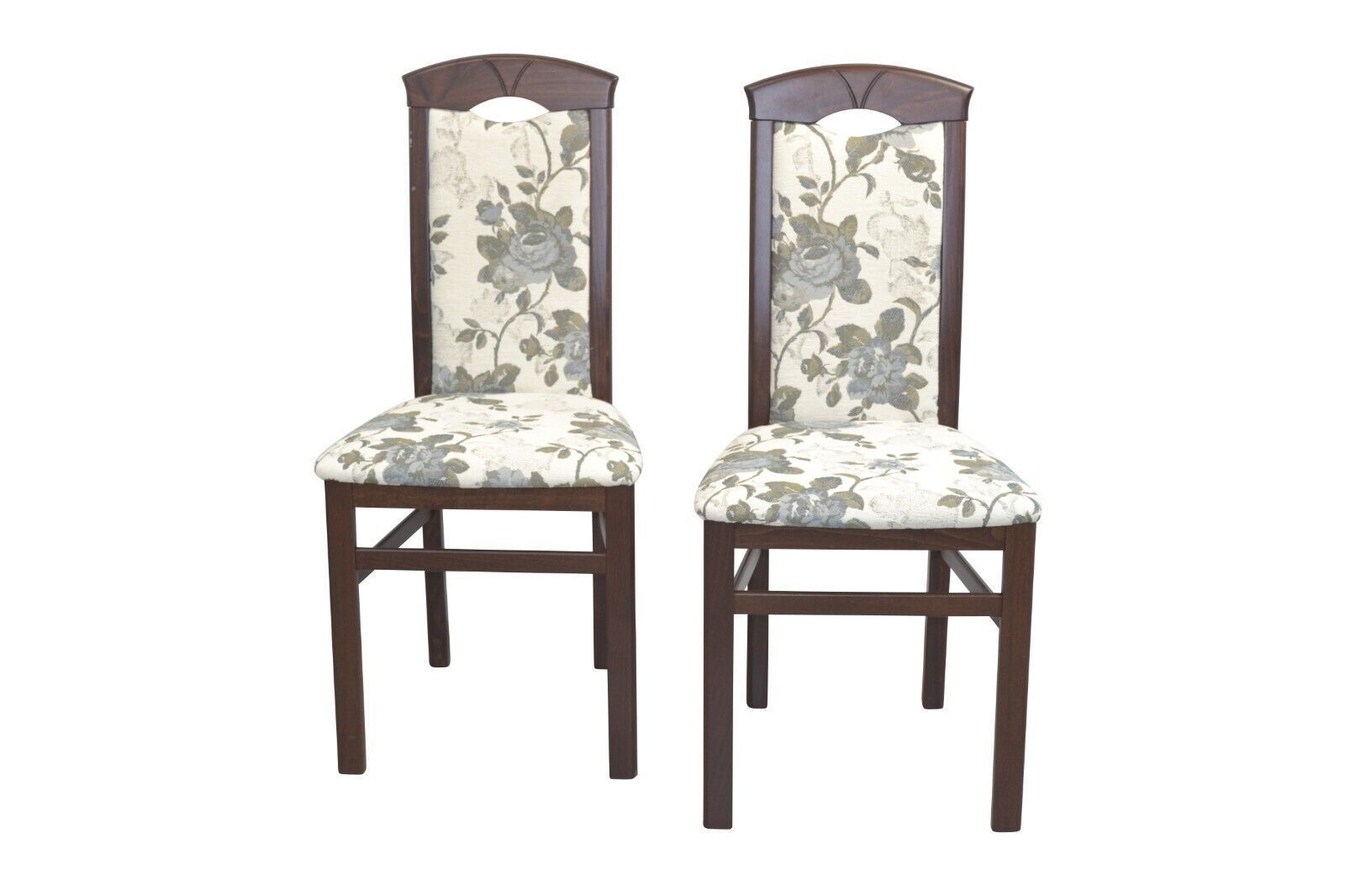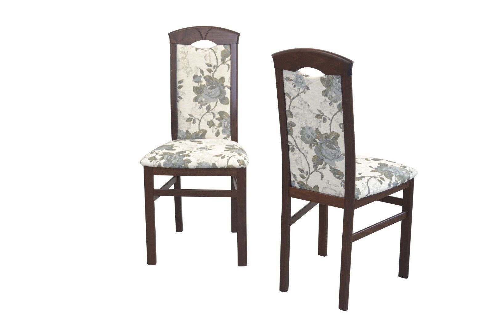 2 x Esszimmerstühle massivholz nußbaum / Blumen Stoff beige Stuhlset Holzstühle