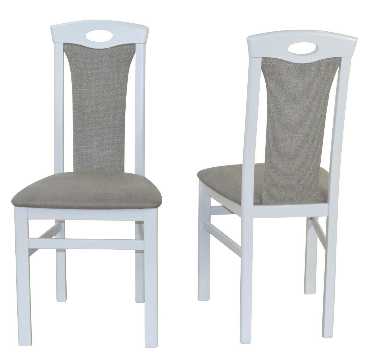 2 x Esszimmerstühle massivholz weiß Kunstleder/ Stoff grau Stuhlset Holzstühle