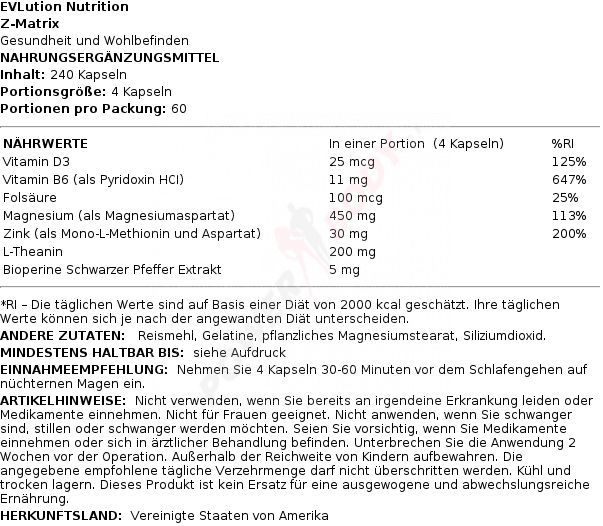 2 x EVLution Nutrition Z-Matrix - 240 caps