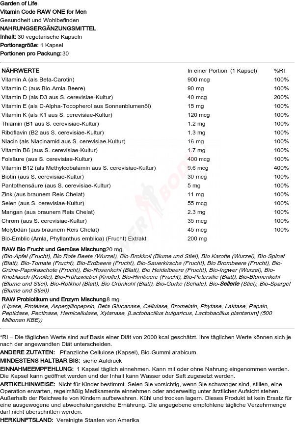2 x Garden of Life Vitamin Code RAW ONE - for Men - 75 caps
