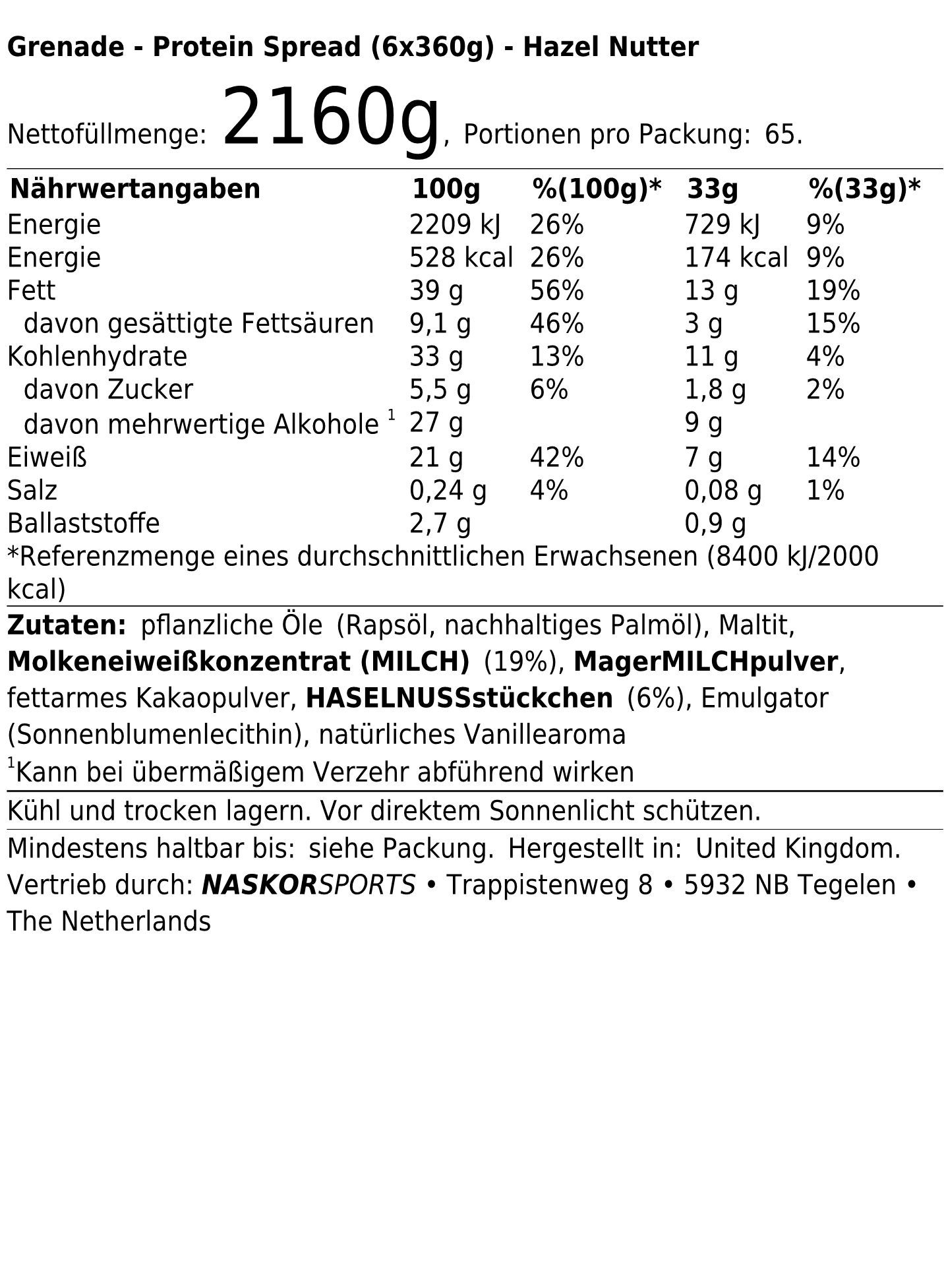 Grenade 2 x Grenade Protein Spread (6x360g) Hazel Nutter