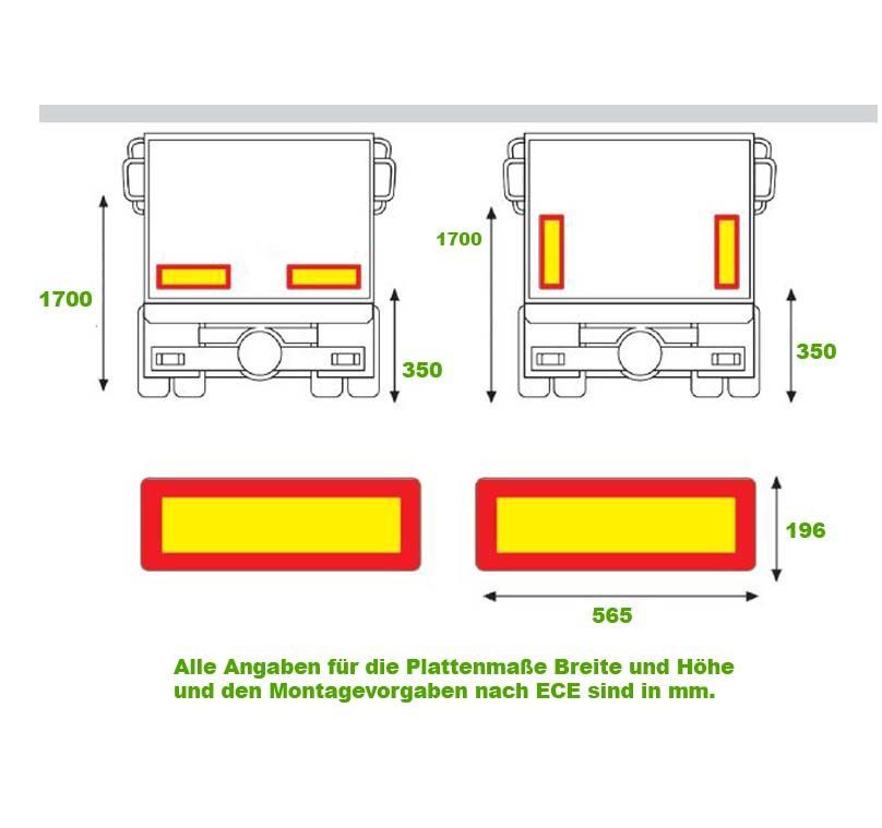 2 x Heckmarkierung 565 x 200 ECE 70 Warntafel Alu Reflektor Anhänger Auflieger