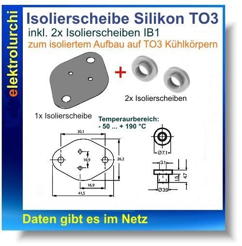 2 x Isolierscheibe Silikon + 4x Isolierbuchse IB1 für TO3 bis 190°C