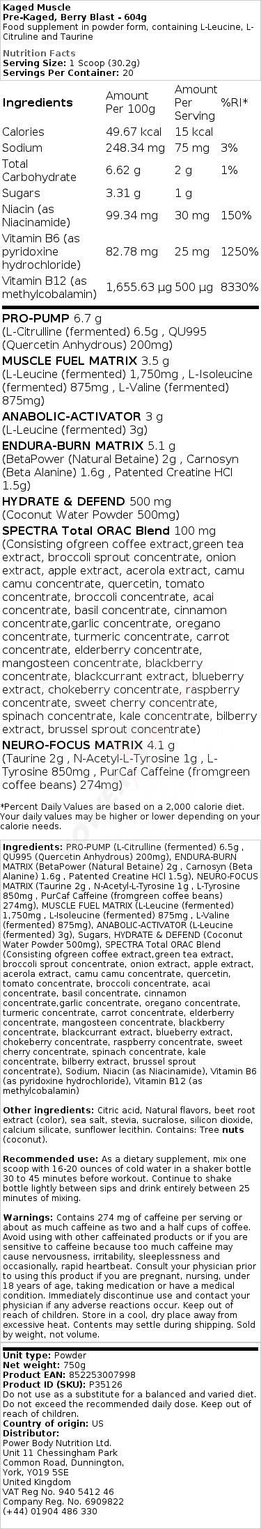 • Pre-Kaged, Berry Blast - 604g