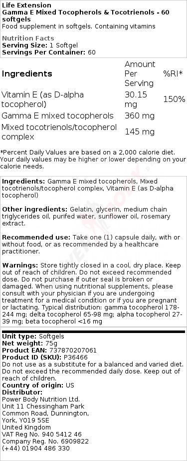 2 x Life Extension Gamma E Mixed Tocopherols & Tocotrienols - 60 softgels