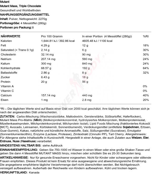 2 x Mutant Mutant Mass, Chocolate Fudge Brownie - 6800g