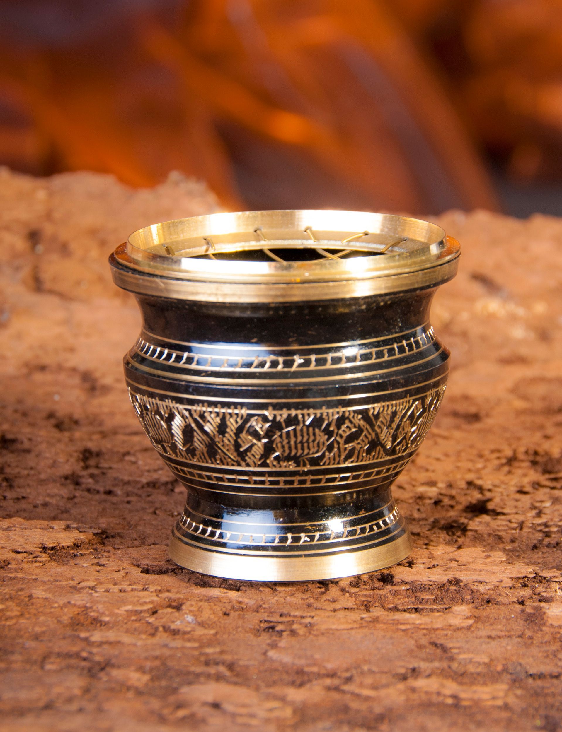 2 x Netzräuchergefäß Messing schwarz-gold B 6 cm Räucherschale Räuchergefäß