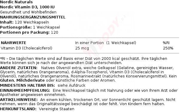 2 x Nordic Naturals Nordic Vitamin D3, 1000 IU - 120 softgels