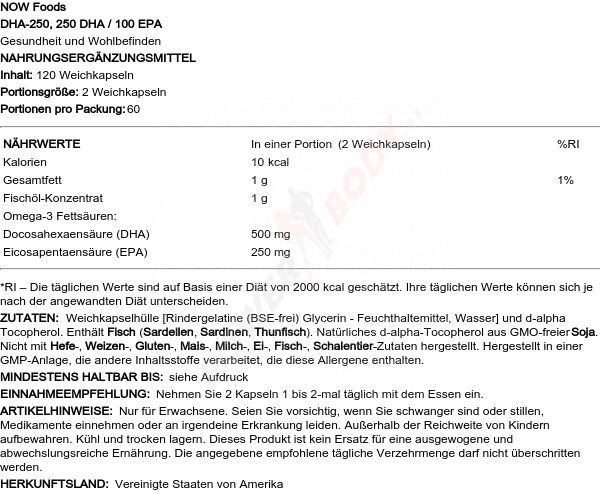 NOW Foods 2 x NOW Foods DHA-250, 250 DHA / 100 EPA - 120 softgels