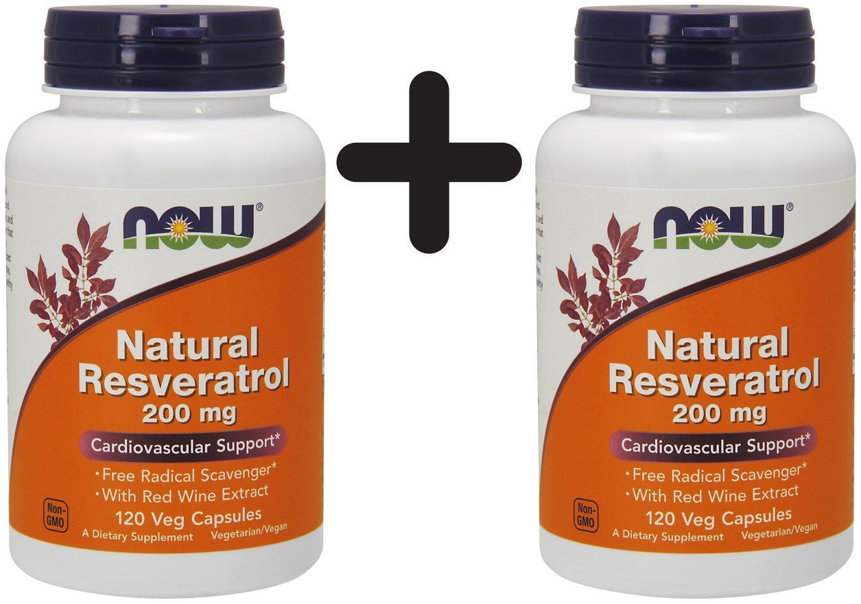 NOW Foods 2 x NOW Foods Natural Resveratrol, 200mg with Red Wine Extract - 120 vcaps