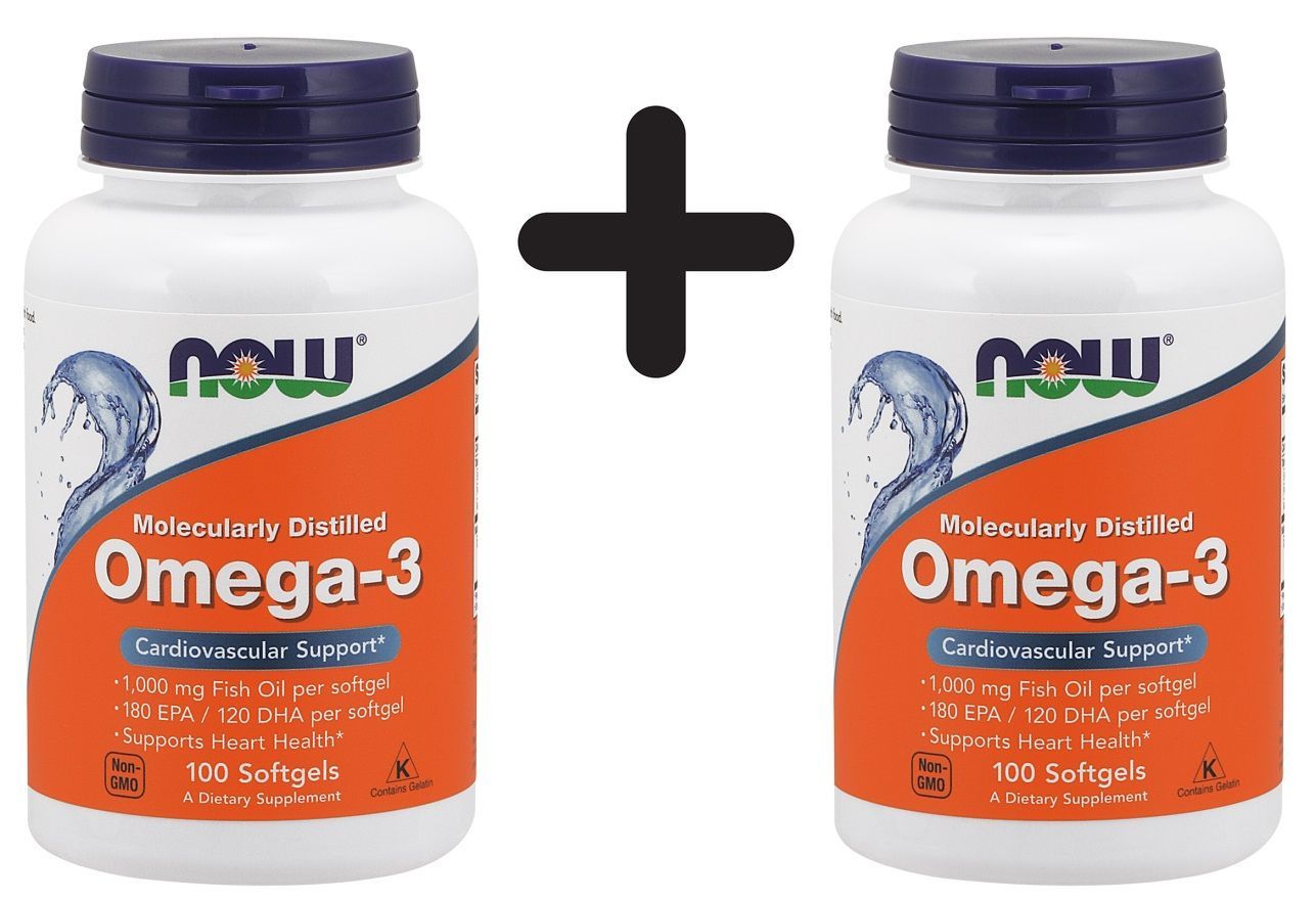 NOW Foods 2 x NOW Foods Omega-3 Molecularly Distilled Fish Oil - 100 softgels