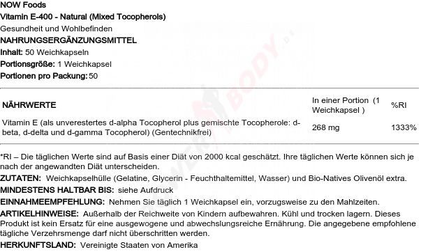 NOW Foods 2 x NOW Foods Vitamin E-400 - Natural (Mixed Tocopherols) - 250 softgels