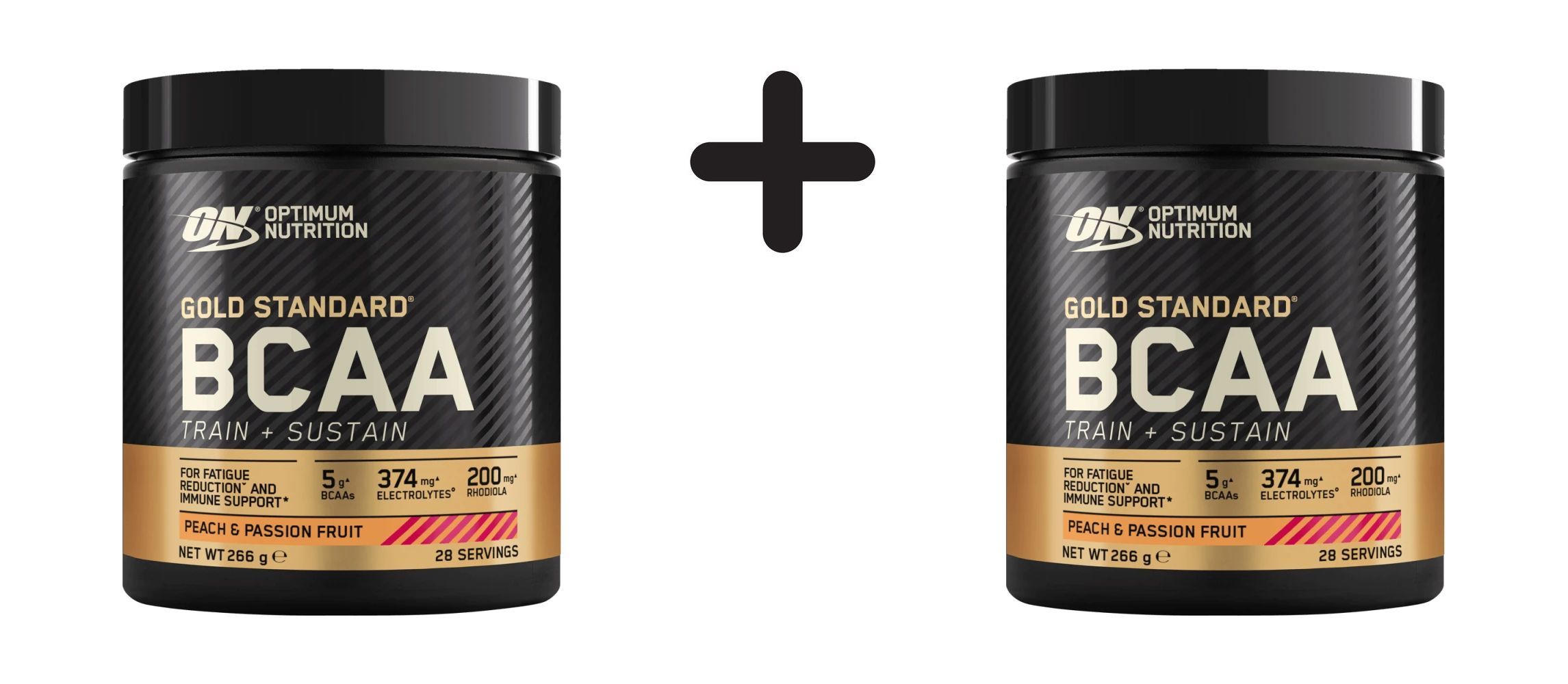2 x Optimum Nutrition Gold Standard BCAA Train + Sustain (266g) Peach and Passionfrui
