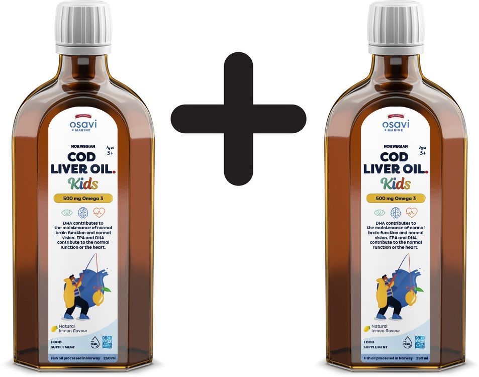 2 x Osavi Norwegian Cod Liver Oil Kids, 500mg Omega 3 (Lemon) - 250 ml