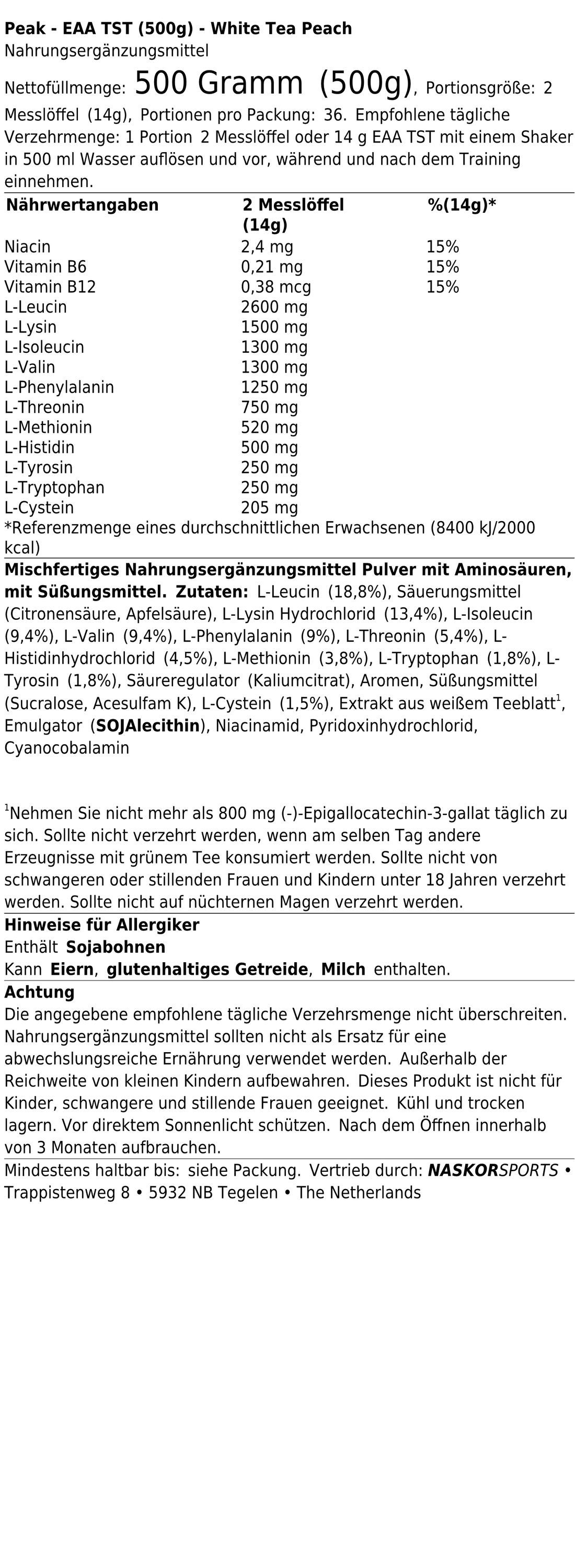 2 x Peak EAA TST (500g) White Tea Peach