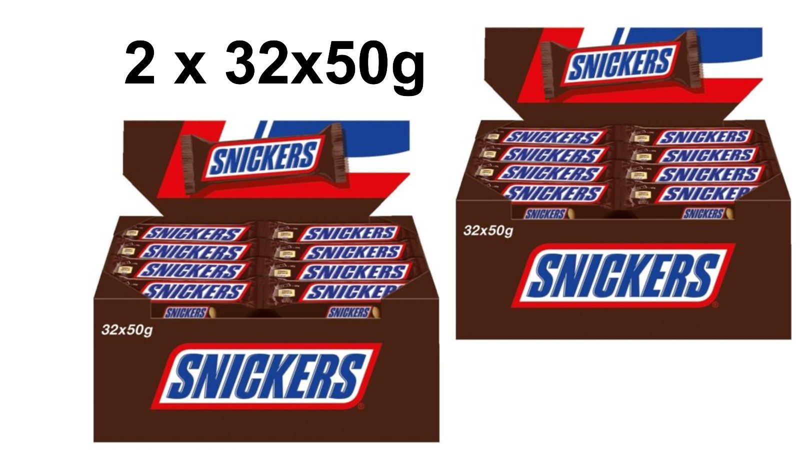 2 x Snickers Schokoriegel 32x 50g im praktischen Thekendisplay