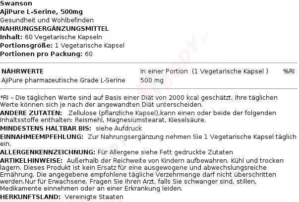 2 x Swanson AjiPure L-Serine, 500mg - 60 vcaps