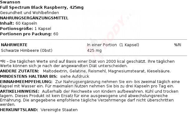 2 x Swanson Full Spectrum Black Raspberry, 425mg - 60 caps