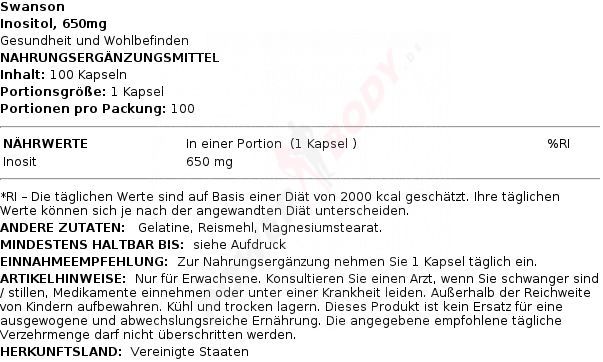 2 x Swanson Inositol, 650mg - 100 caps