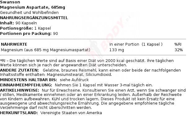 • 3 x Swanson Magnesium Aspartate, 685mg - 90 caps