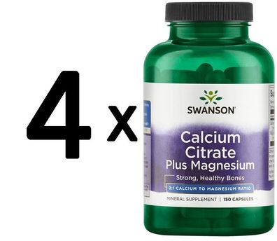 • 4 x Swanson Calcium Citrate Plus Magnesium - 150 caps