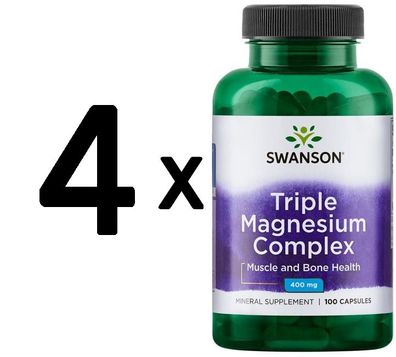• 4 x Swanson Triple Magnesium Complex, 400mg - 100 caps