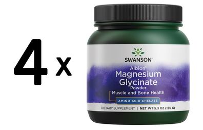 • 4 x Swanson Albion Chelated Magnesium Glycinate Powder - 150g