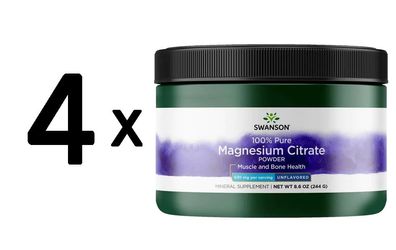 • 4 x Swanson Magnesium Citrate Powder, 100% Pure - 227g