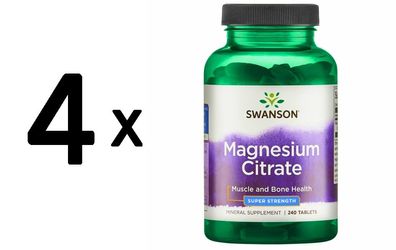 • 4 x Swanson Magnesium Citrate, 225mg Super-Strength - 240 tabs