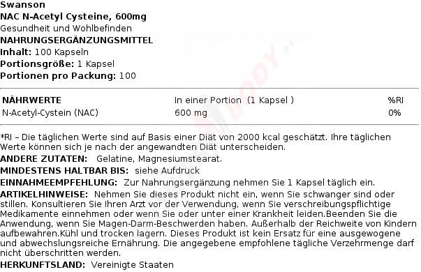 2 x Swanson N-Acetyl Cysteine, 600mg - 100 caps
