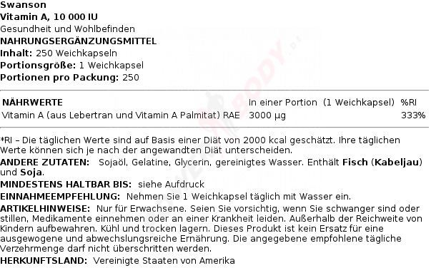 2 x Swanson Vitamin A, 10 000 IU - 250 softgels