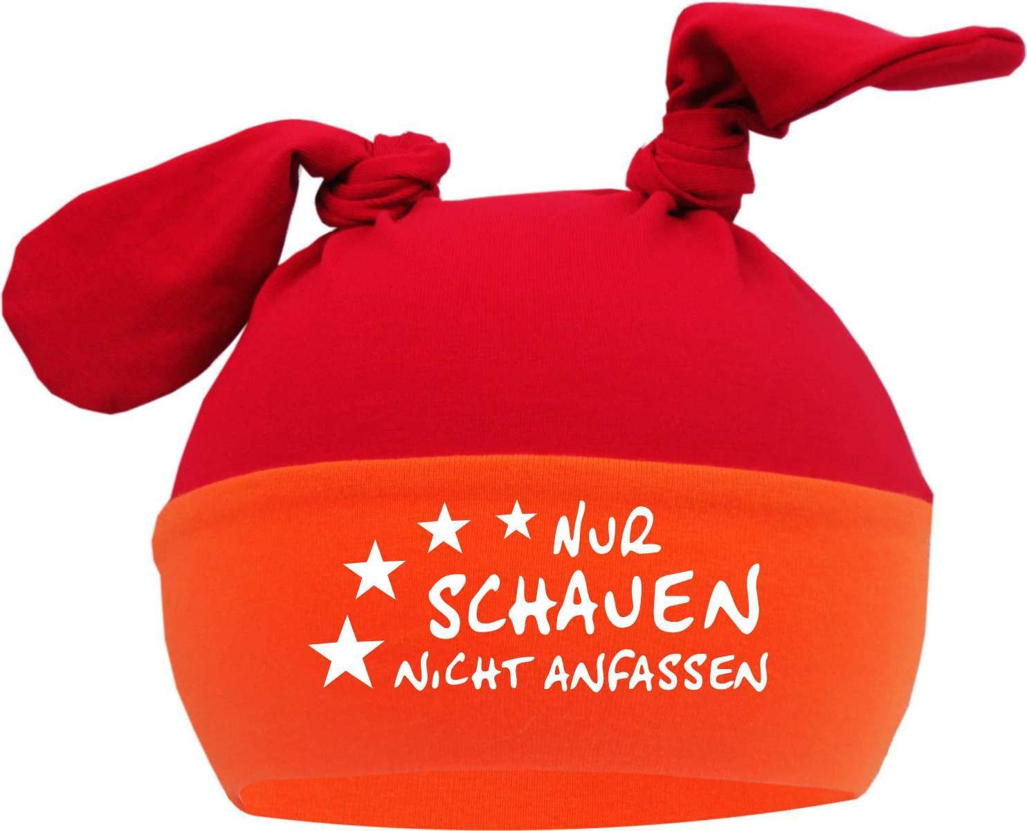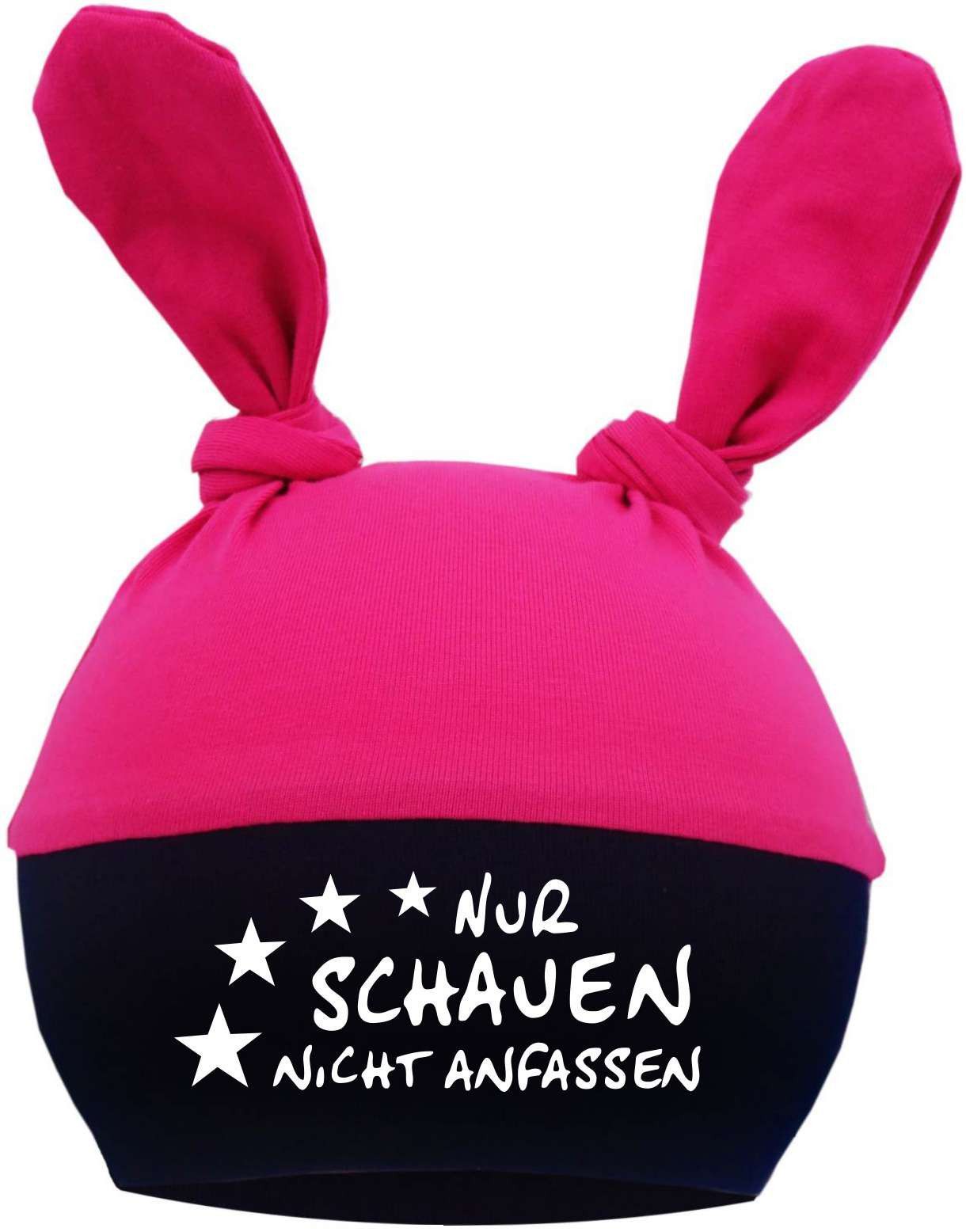 2-Zipfel Baby Mütze Multicolor mit Nur schauen nicht anfassen
