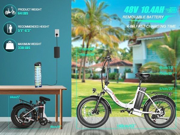 20" * 3.0" Tires City Elektrofahrrad, 367.2 Wh 250W Akku E-Bike Commuter Folding