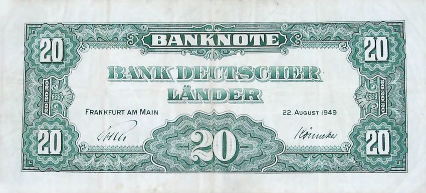 20 Deutsche Mark 1949 Bank Deutscher Länder Originalbanknote - 0047